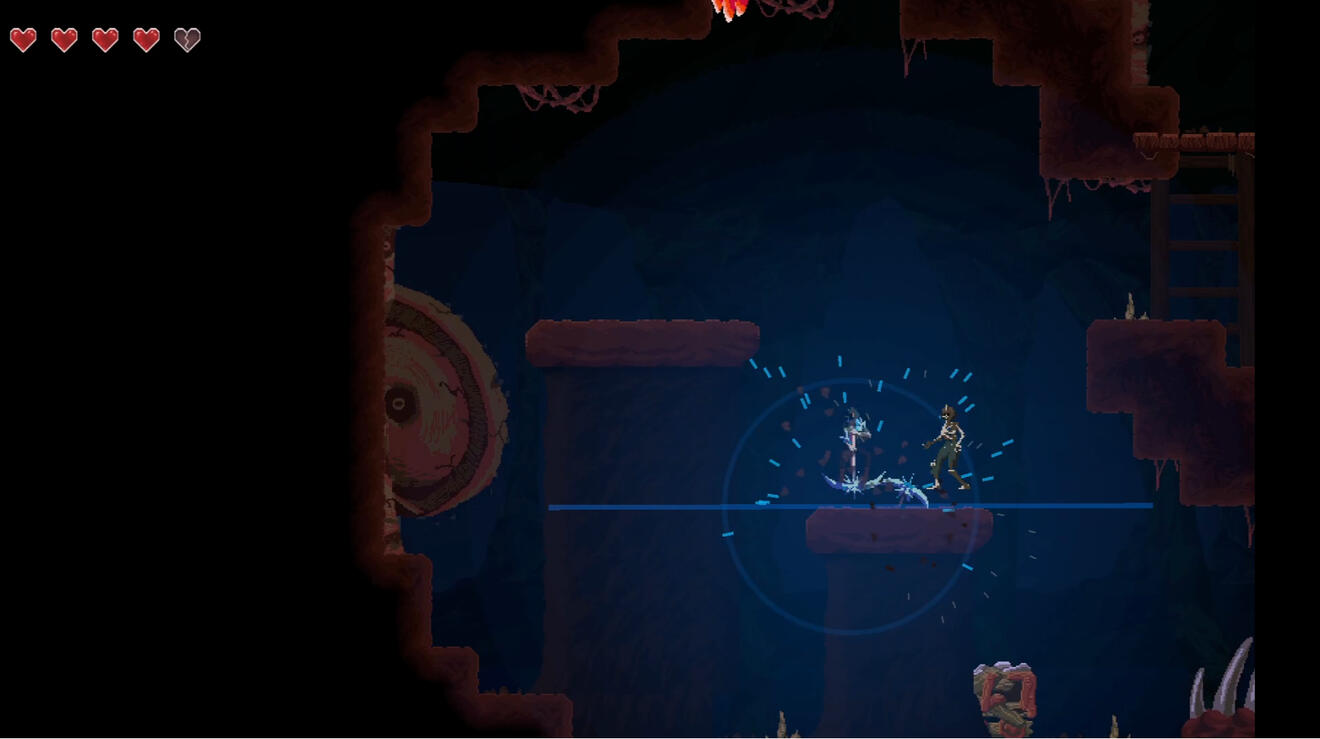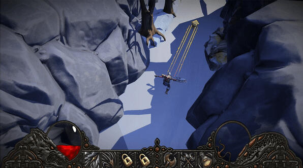 "Unlock the power of an enchanted pickaxe, use it to climb, teleport and fight through a treacherous cave in an attempt to get back out"