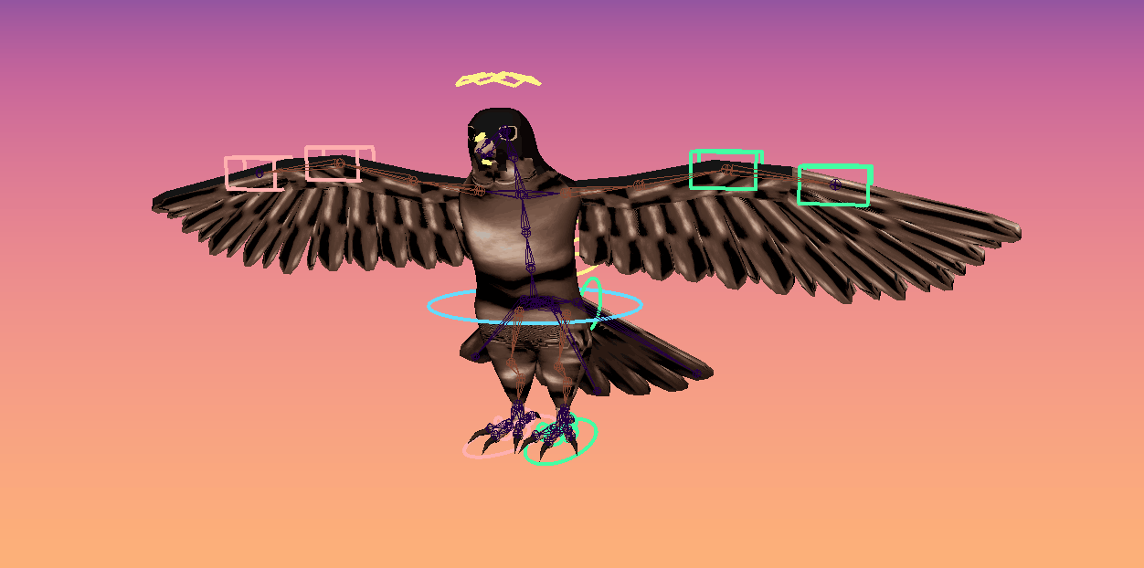 There was a lot of research that went into this rig. I had to look into bird anatomy to be able to create a rig with the most birdlike feeling to the wings.