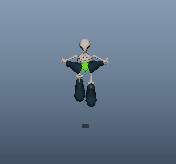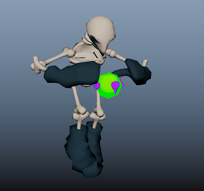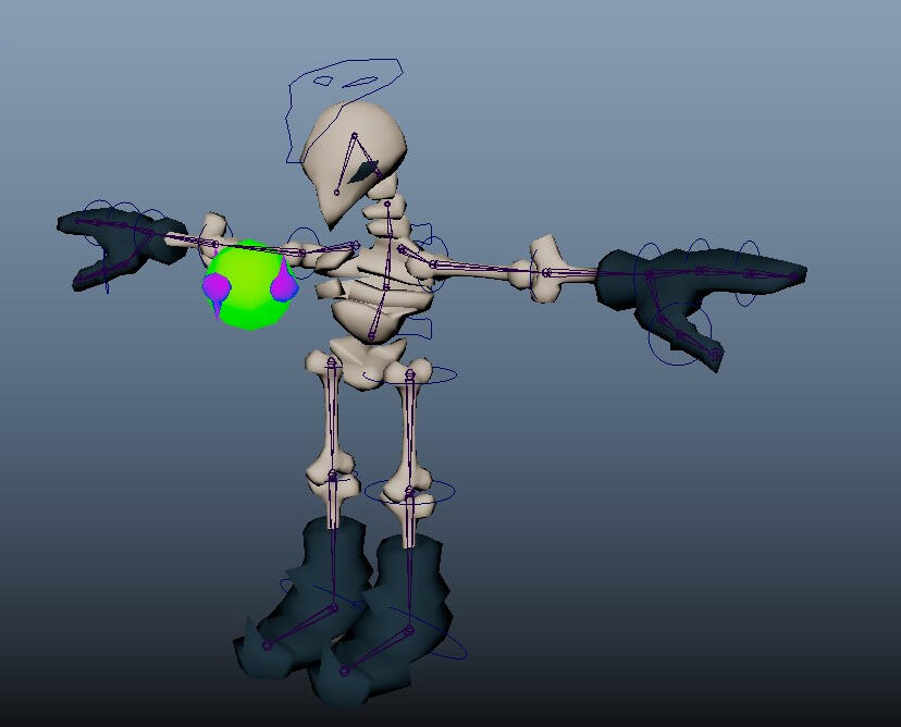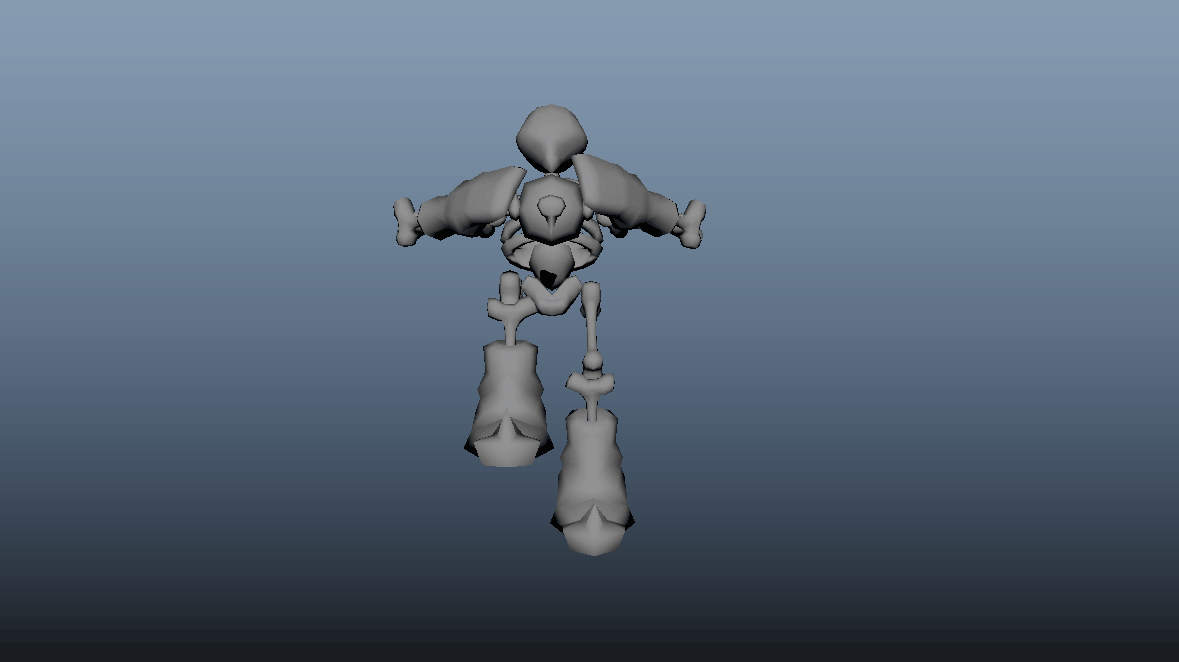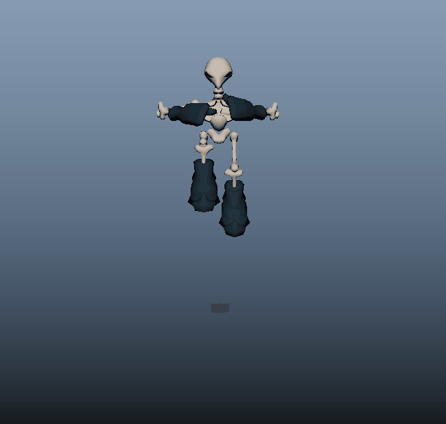 Since this character is only bones I had to test out the movement of the joints as I went along with the skinning part. Since I wanted to avoid the bones to bend into each other.