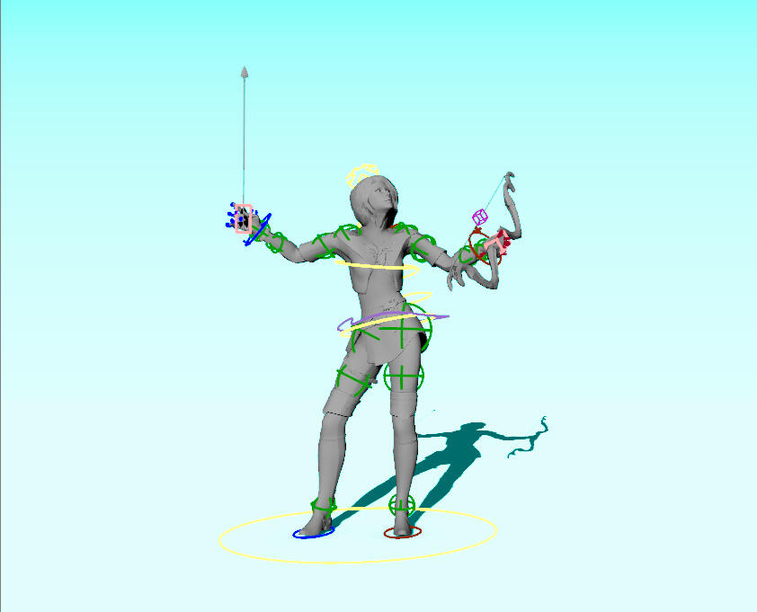 It contained ribbon spine, joint twists and a socket in both hands and the back for the bow and arrow. I added SDK to the bow and string to add some feedback when pulling the string in a way to make the work more efficiently without having to worry about animating the bow as well as the string.