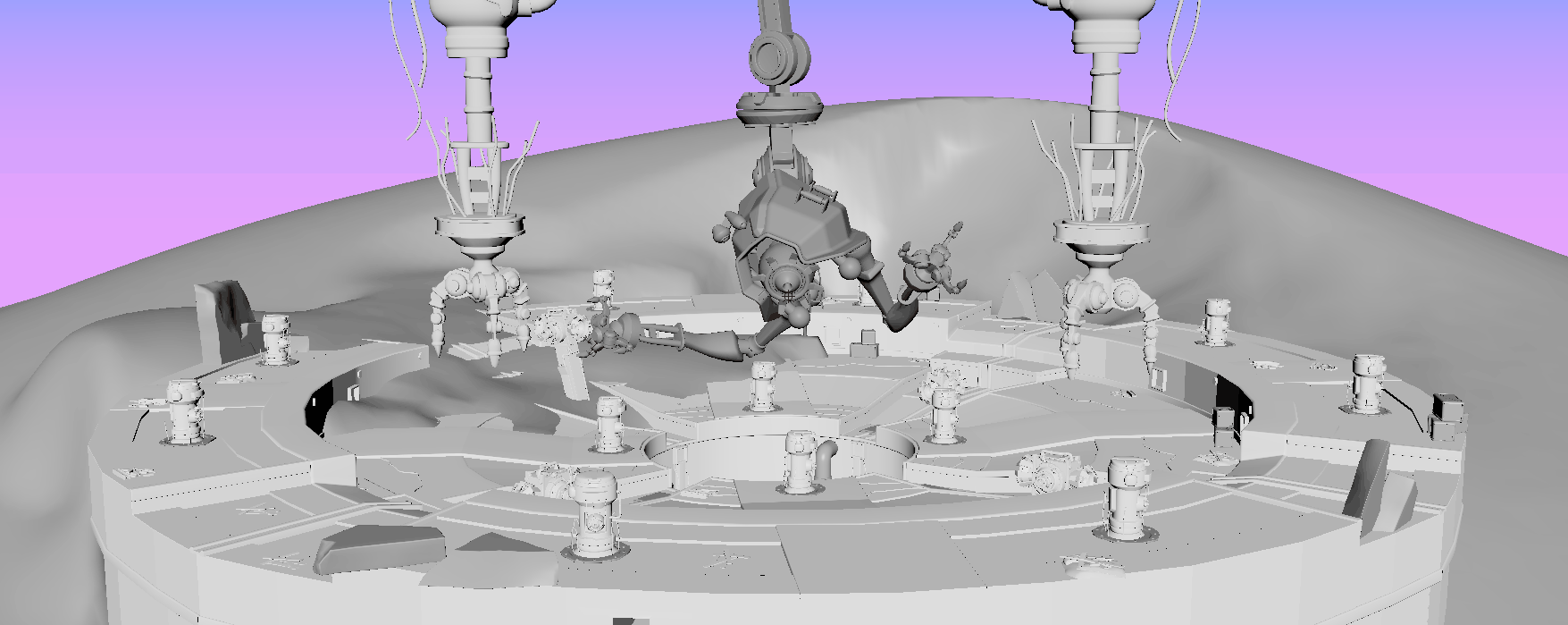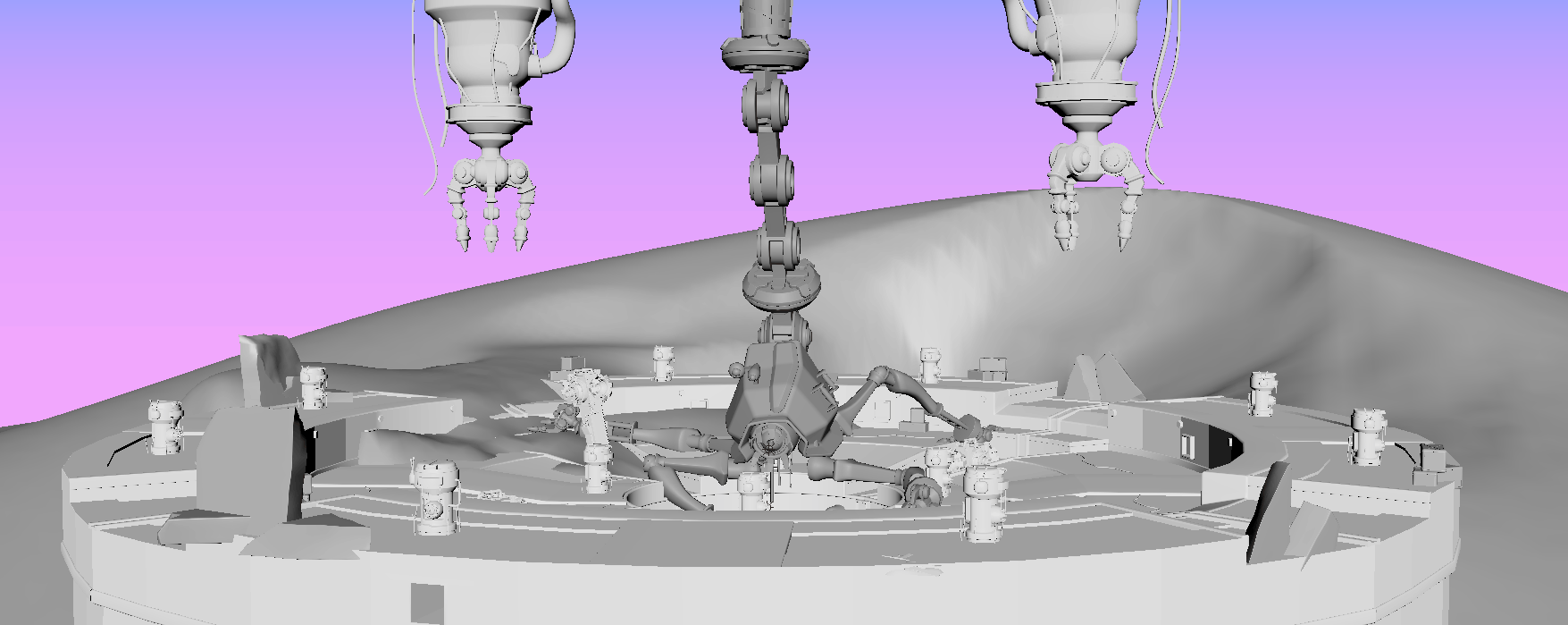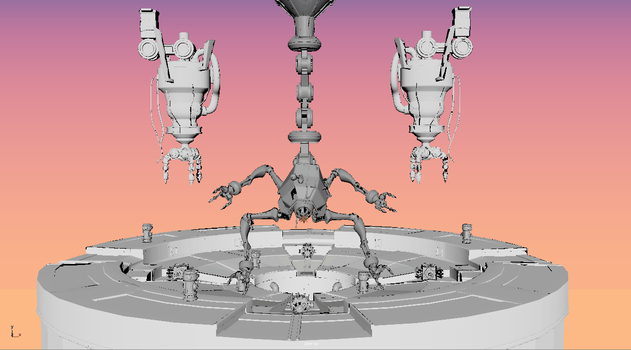 This is an animation for the 2 big piston arms the boss controls. The animations is when they first comes to use.