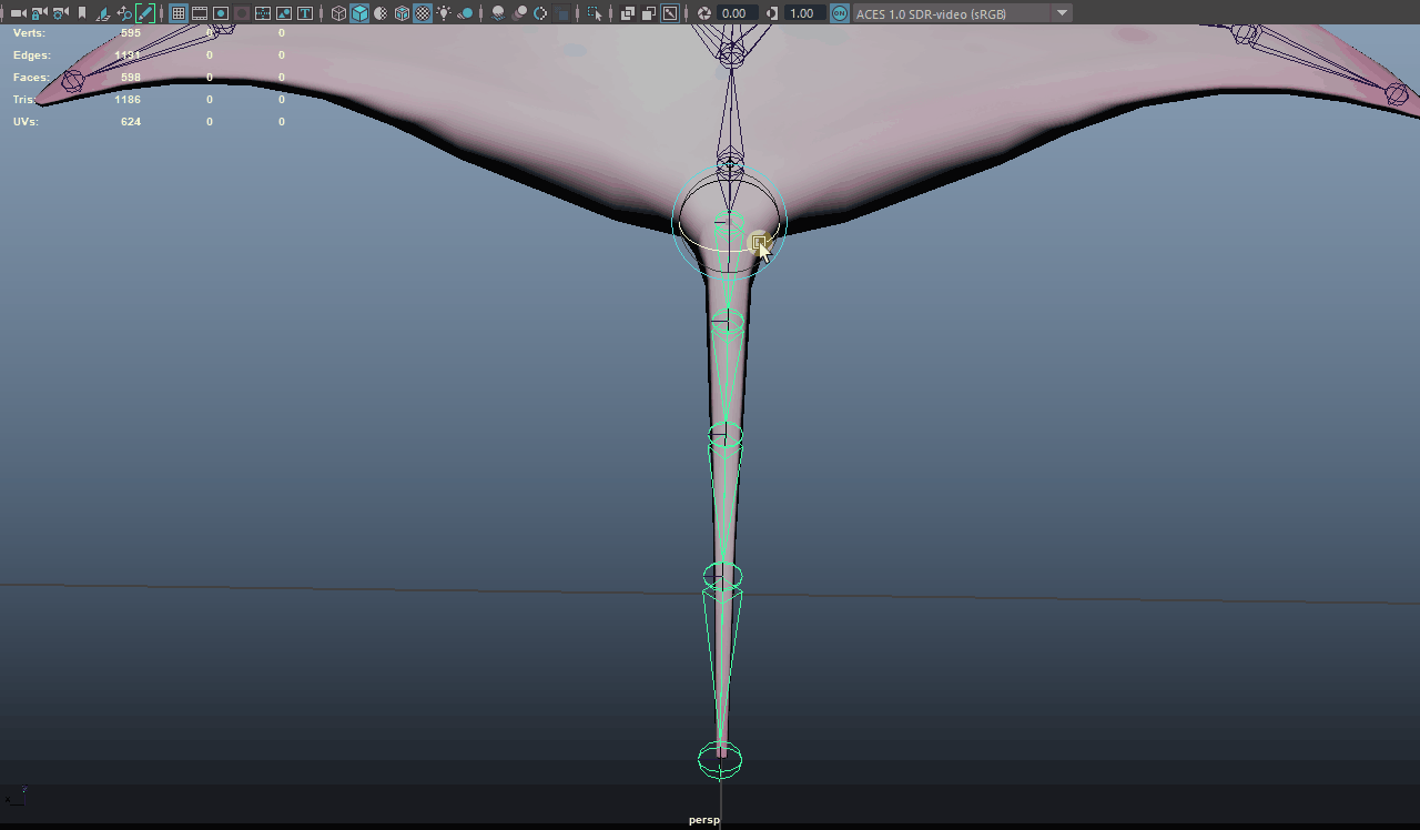 The most challenging part of this rig was to find references of manta rays movement. Most of it was the tail and main body movement, the wings only helped it guide the way forward. They did not flap like birds as I am portraying in this video.