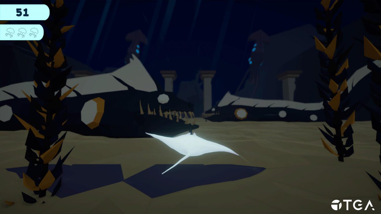 "A magical mantaray dash through dangers on it’s way home guided by the jellyfishes"